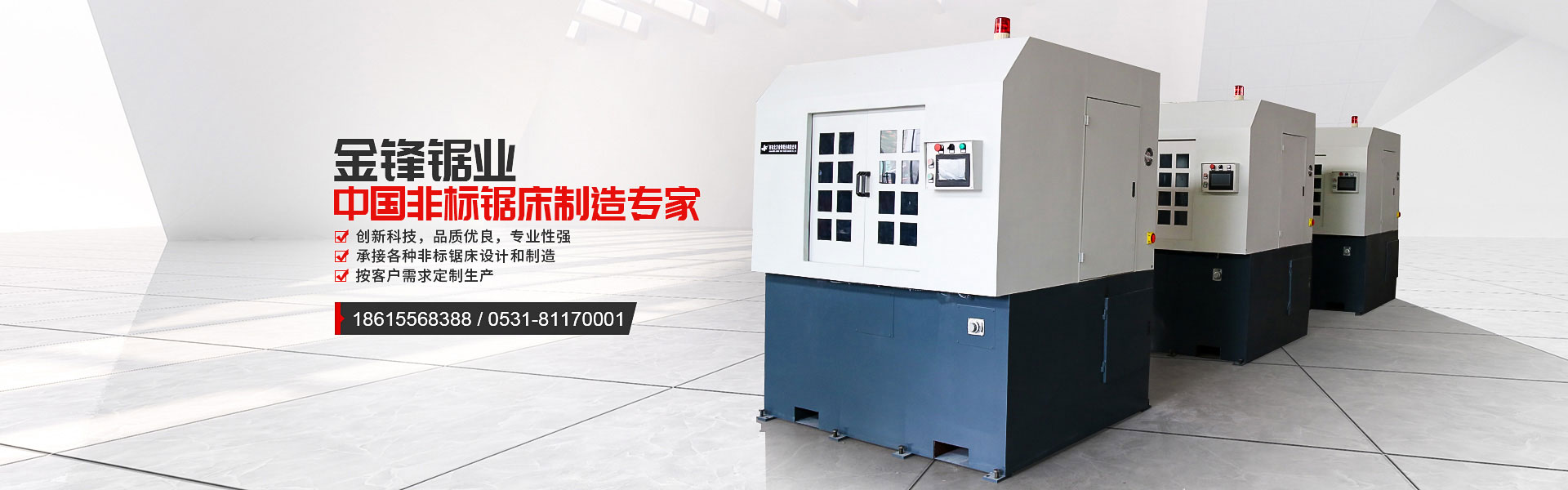 濟南北方金鋒鋸業有限公司,是鋸床生產廠家。2003年建廠,具有多年生產金屬帶鋸床的經驗,擁有自主的開發、設計和制造能力,生產的金鋒系列臥、立式金屬帶鋸床,性能穩定,暢銷國內外。